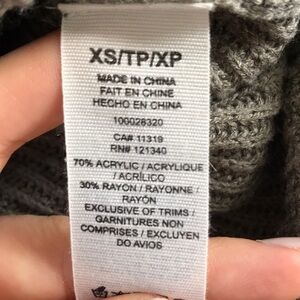 Olive sweater with cross cross tied shoulders. V neck with small slits at the wrists and bottom as pictured.