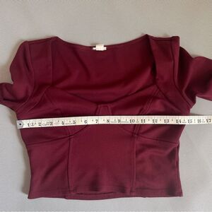 Garage Burgundy Maroon Long Sleeve Corset Style Stretch Crop Top Women’s Size M