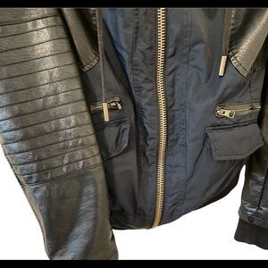 Garage Faux Vegan Leather and Nylon Bomber Jacket