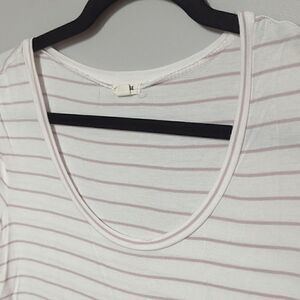 Super soft scoop neck. White with light purple stripes