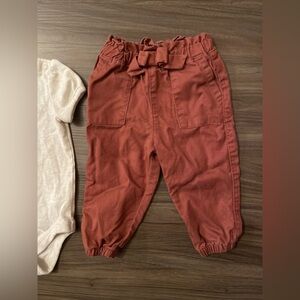 Garanimals Baby Girl Cream Baby onesie with brown casual pants size 6/9M