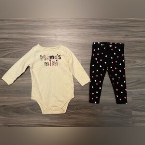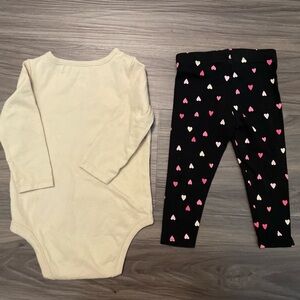 Garanimals Beige Long Sleeve Onesie and Black Heart Leggings Set size 6/9M
