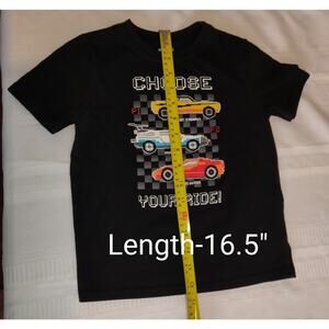Previously Owned Garanimals Black T-shirt. Has some racing cars pictured on front.