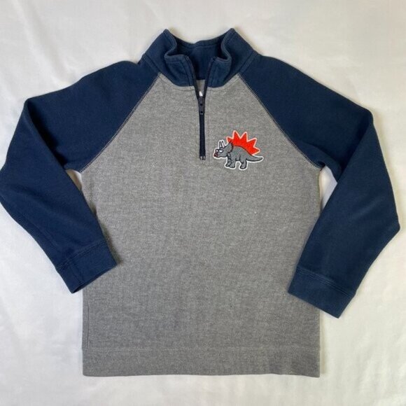 Garanimals Boy's Size 7 Quarter Zip Polo Long Sleeve Gray Navy Dinasaur Patch