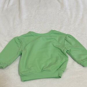 Adorable green sweatshirt with cherry graphic. Soft and comfortable. Perfect for kids.