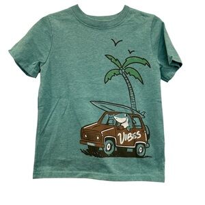 This Garanimals tee in a refreshing green hue features a playful palm tree and vintage SUV graphic, perfect for a casual day out. Crafted from a soft cotton blend, it offers comfort and style with its classic crew neck and short sleeves.