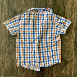 Blue and orange gingham print short sleeve button down by Garanimals in good preowned condition. Some minor piling from washing. No other flaws.