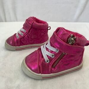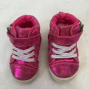 Garanimals Toddler Girls Sz 3 Metallic Hot Pink Shimmer Quilted Heart High Tops