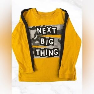 Gold long sleeve shirt. Says next big thing! Has dark blue stripe down the sleeves with a solid gold back. Size 3t