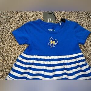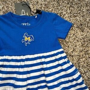 Garb Girls 2T Blue, White, Gold Sports Themed Short Sleeve Dress