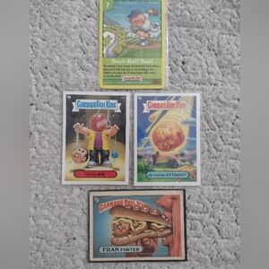 Set of four Garbage Pail Kids trading cards featuring unique characters. Some old and some newer ones