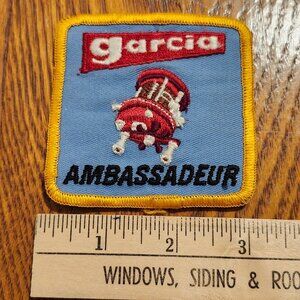 This vintage Garcia Ambassadeur patch features detailed embroidery with vibrant colors and durable craftsmanship, ideal for collectors or adding flair to apparel.