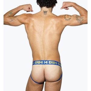 Introducing the Santorini Blue and Gold Jockstrap, inspired by the iconic hues of the Greek island.
