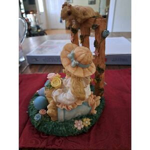 Easter decor, spring decoration, garden bunny figurine, resin rabbit, mama bunny with babies, pastel flowers, trellis design, Easter bonnet, Easter eggs, spring home decor, table display, collectible figurine, gift for Easter, spring centerpiece, cute bunny decoration, holiday figurine, seasonal decor, garden ornament