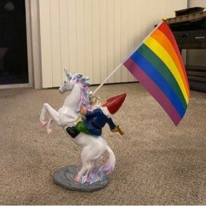 DESIGNED FOR GREATNESS: Unicorn PLUS A Cat PLUS A Gnome PLUS An American Flag PLUS A Gold Gun Equals An Epic Statue!! A Removable American Flag Is Included With Each Statue!! Merica!!