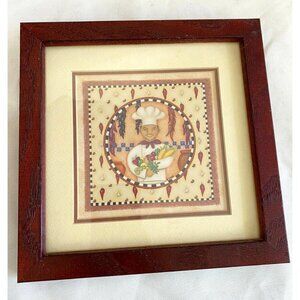 Garden Ridge Red Chili Peppers w Chef Wood Framed Artwork Kitchen Lacuisine 7x7