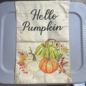 Garden flag Hello Pumpkin words with pumpkins on front and back