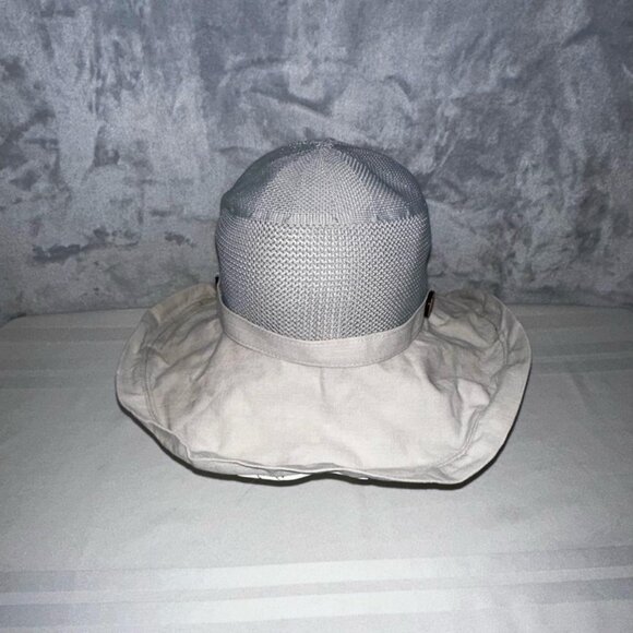 Elevate your outdoor ensemble with this chic and practical Garden Hat for Women, boasting an adjustable brim for versatile wear. Crafted with a blend of durable materials designed to stand up to the elements, the hat features a light beige hue on its expansive brim, complemented by a contrasting grey crown for a touch of sophistication. The breathable mesh panel at the top ensures your comfort on warm days, while the adjustable drawstring provides a customizable fit for all-day comfort. Whether tending to your garden, enjoying a beach day, or embarking on a tropical adventure, this hat is in gently used condition (GUC) and is ready to shield you from the sun in style