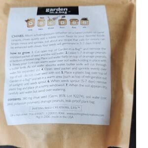 The Garden in a Bag "Chives" gardening kit is a small rectangular plant bag with a capacity of 16 oz, designed for easy windowsill growing. Made of paper, this brown bag is suitable for indoor and outdoor use, and specifically designed for growing herbs. The kit includes one plant bag from the trusted brand Garden in a Bag, making it a convenient and efficient option for those looking to cultivate their own herbs at home.