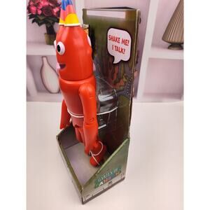 Talks when you shake it. (it is working a little right now, but you can tell the batteries need to be replaced - 2 AAA batteries needed.