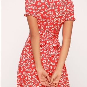 ✨ Lulus Exclusive! Go wandering through the wildflowers in the Lulus Garden Explorer Red Floral Print Mini Dress! This weekend-ready dress is sure to wow wherever you wear it, thanks to its darling white floral print, and soft woven construction (with dotted texture throughout). A deep V-neckline spices things up, while short sleeves with ruffle detail keeps things sweet. Banded empire waist gives way to a flared mini skirt. Hidden back zipper/clasp.