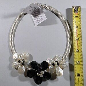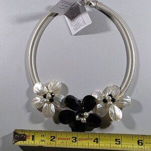 Gardenia Pearl & Black Flower Necklace Adjustable Closure floral statement MOP