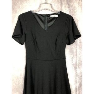 Gardenwed Women’s Sz Small Black V-Neck Short Sleeve A-Line Dress Knee Length