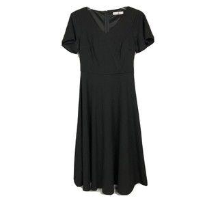 Womens Black V-Neck Short Sleeve A-Line Dress Knee Length.
