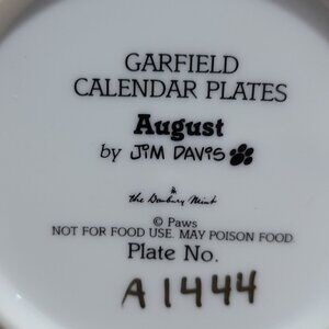 Garfield Calendar August Plate Jim Davis Plate No A 1444 Danbury Mint