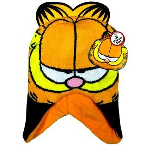New 2 Piece Garfield Winter Hat set. Warm Cozy and fun the Fleece Lined Knit hat will keep you warm on the coldest days Kids Orange Black Yellow One Size