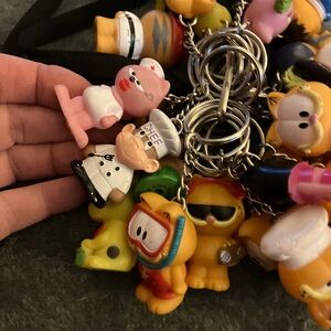 Add a touch of fun to your keys with this Garfield keychain set. Featuring vibrant colors, these keychains are perfect for any Garfield fan. Have 23 collectable Garfield figures from star awards key chain.