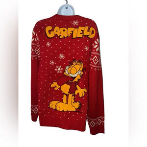 Garfield Ugly Christmas Sweater Cardigan Odie Dog Cat Red Santa Holiday Sz Med