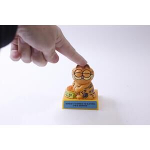 Bring home a classic with this Garfield the Cat Push Down Figure from 1981. This adorable collectible features Garfield's iconic design, and when you push him down, his eyes close in a charming, sleepy gesture. A perfect addition for fans of the beloved comic strip, this decorative figure adds a nostalgic touch to any collection. Whether displayed on a shelf or desk, Garfield is sure to bring a smile with his timeless appeal and playful feature. A must-have for collectors and cat lovers alike!