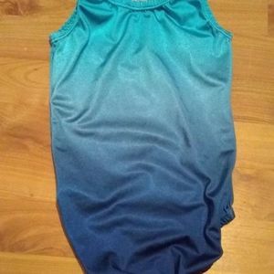 Garland Active Wear Leotard. Multi color blue. Size Child Large. Polyester and spandex blend. Great condition. Elastic around neck and legs.