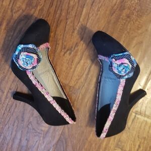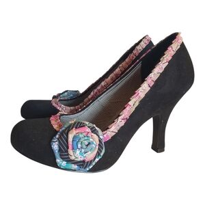 Garland - Ruby Shoo sz 6 black embroidery pink flower