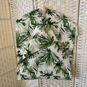 Stylish dress with a vibrant green leaf pattern garment bag with zipper down front