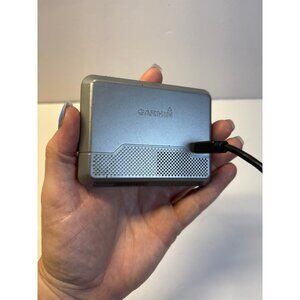Garmin GPS turns on needs to be updated through the computer has a USB cord no plug or outlet what you see in the second photo is what you will receive & does include scan disc. No Mount, no box or instructions