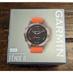 Garmin fenix 6 Multisport GPS Smartwatch - 47mm Sapphire Titanium/Ember Orange. Brand New/sealed item.