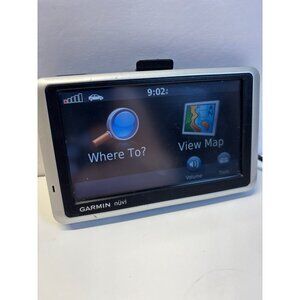 Garmin NUVI 4 inch GPS navigating system fully functional and works includes USB cord no plug outlet. You can hook it up to your computer and you can also charge it or use it unplugged if it has enough charge.