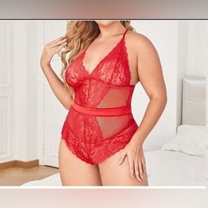Garmol Women’s Red Lingerie One Piece Teddy Fishnet Lace Bodysuit Corset Size XL