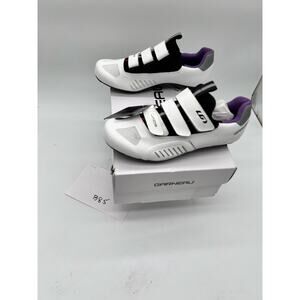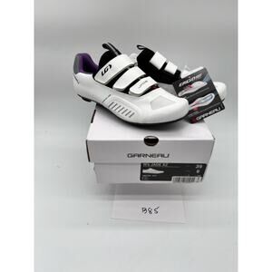Garneau Jade XZ ergo air cycling shoes. cycling shoe. Front air intake allows for optimal air flow through the sole. Ergo stream outsole - fiberglass injected/nylon outsole that allows for constant ventilation to reduce fatigue and increases humidity evacuation. easy slip on with better stretch. 3 hook and loop straps to keep the shoes secure. Women's size US-8 EU-39 UK-5 Japan24/25 B85