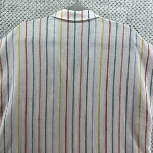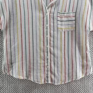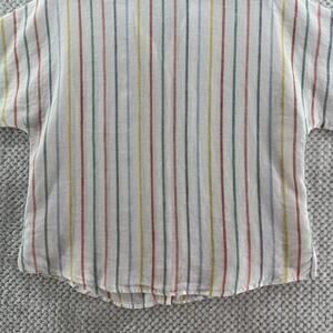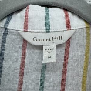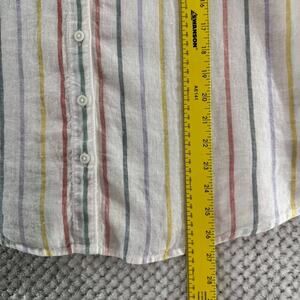 Garner Hill Top Women 14 White Striped Rainbow Linen Button Front Short Sleeve