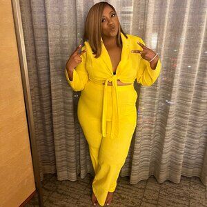 GarnerStyle × FTF Yellow Linen Wide-Leg Pants | Plus Size 2X | NWT