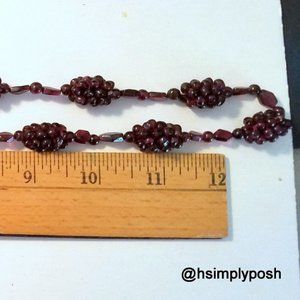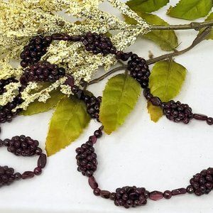 A stylish necklace with genuine garnet pomegranate design clusters.