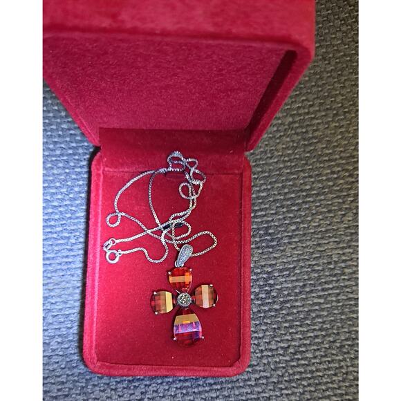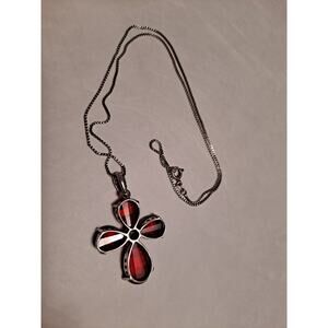 Garnet Cross Necklace 18 inch Chain Large Sterling Silver Marcasite Pendant VTG