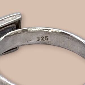 The ring’s simple geometry and lightly textured silver band evoke a mid-century artisan design — timeless, minimal, and effortlessly chic.