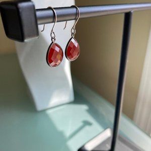 Garnet Gemstone Earrings on Sterling Silver Wire - 1.25" long