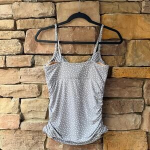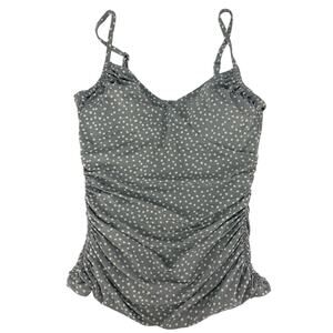 Garnet Hill 10 Swimsuit Ruched Tankini Top Padded Built Bra Gray White Polka Dot