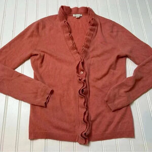 Garnet Hill 100% Cashmere Sweater Cardigan Ruffle XS 287