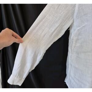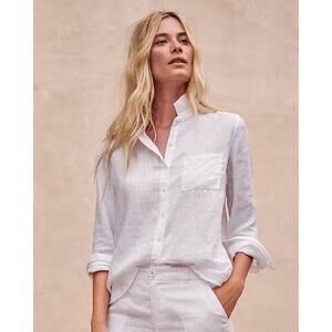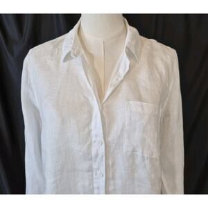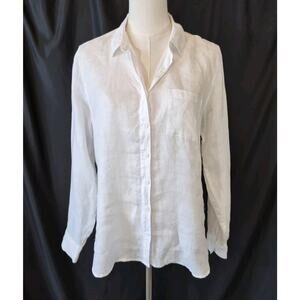 Garnet Hill 100% European Flax Easy Linen Button-Down Shirt in Sea Salt US 4